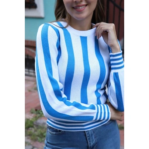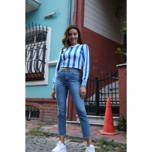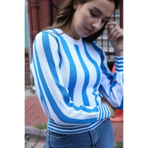 Fırfır Detaylı Çizgili Triko Bluz