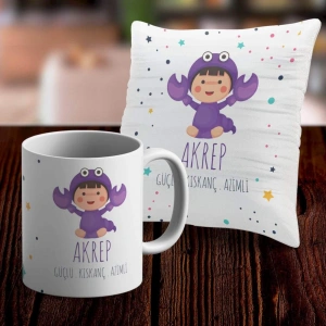 Akrep Tasarımlı Sevimli Kupa ve Yastık Kılıfı Seti