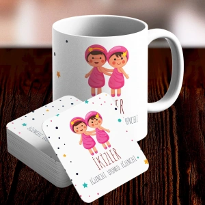 İkizler Burcu Özel Sevimli Kupa ve Altlık Seti