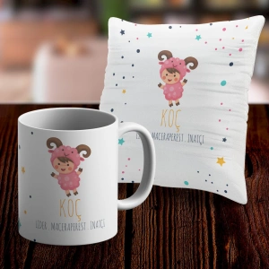 Koç Tasarımlı Sevimli Kupa ve Yastık Kılıfı Seti