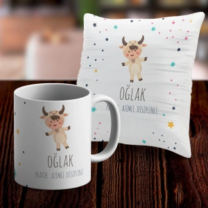 Oğlak Tasarımlı Sevimli Kupa ve Yastık Kılıfı Seti