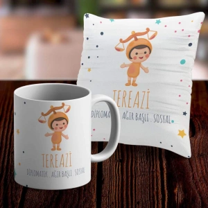 Terazi Tasarımlı Sevimli Kupa ve Yastık Kılıfı Seti