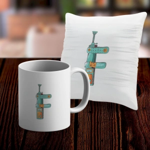 F Harfi Tasarımlı Kupa ve Yastık Kılıfı Hediye Seti
