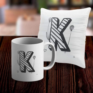K Harfi Tasarımlı Kupa ve Yastık Kılıfı Hediye Seti