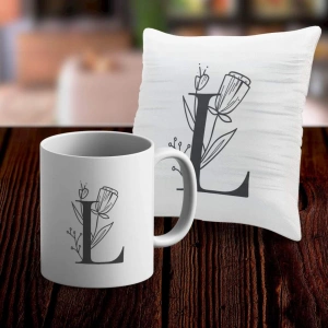 L Harfi Tasarımlı Kupa ve Yastık Kılıfı Hediye Seti