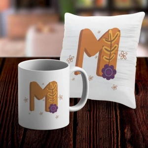 M Harfi Tasarımlı Kupa ve Yastık Kılıfı Hediye Seti