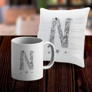 N Harfi Tasarımlı Kupa ve Yastık Kılıfı Hediye Seti