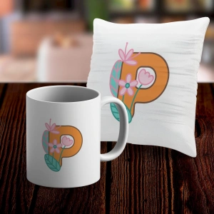 P Harfi Tasarımlı Kupa ve Yastık Kılıfı Hediye Seti