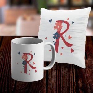 R Harfi Tasarımlı Kupa ve Yastık Kılıfı Hediye Seti