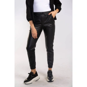 Lastikli Cepli Deri Pantolon-SİYAH